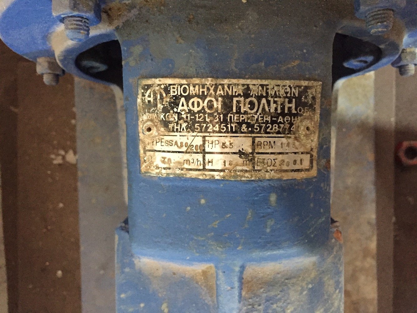 Φυγοκεντρική Αντλία Νερού Επιφάνειας 80/200 Αφων Πολίτη. Μοτέρ μονοφασικό - τριφασικό SIMENS.