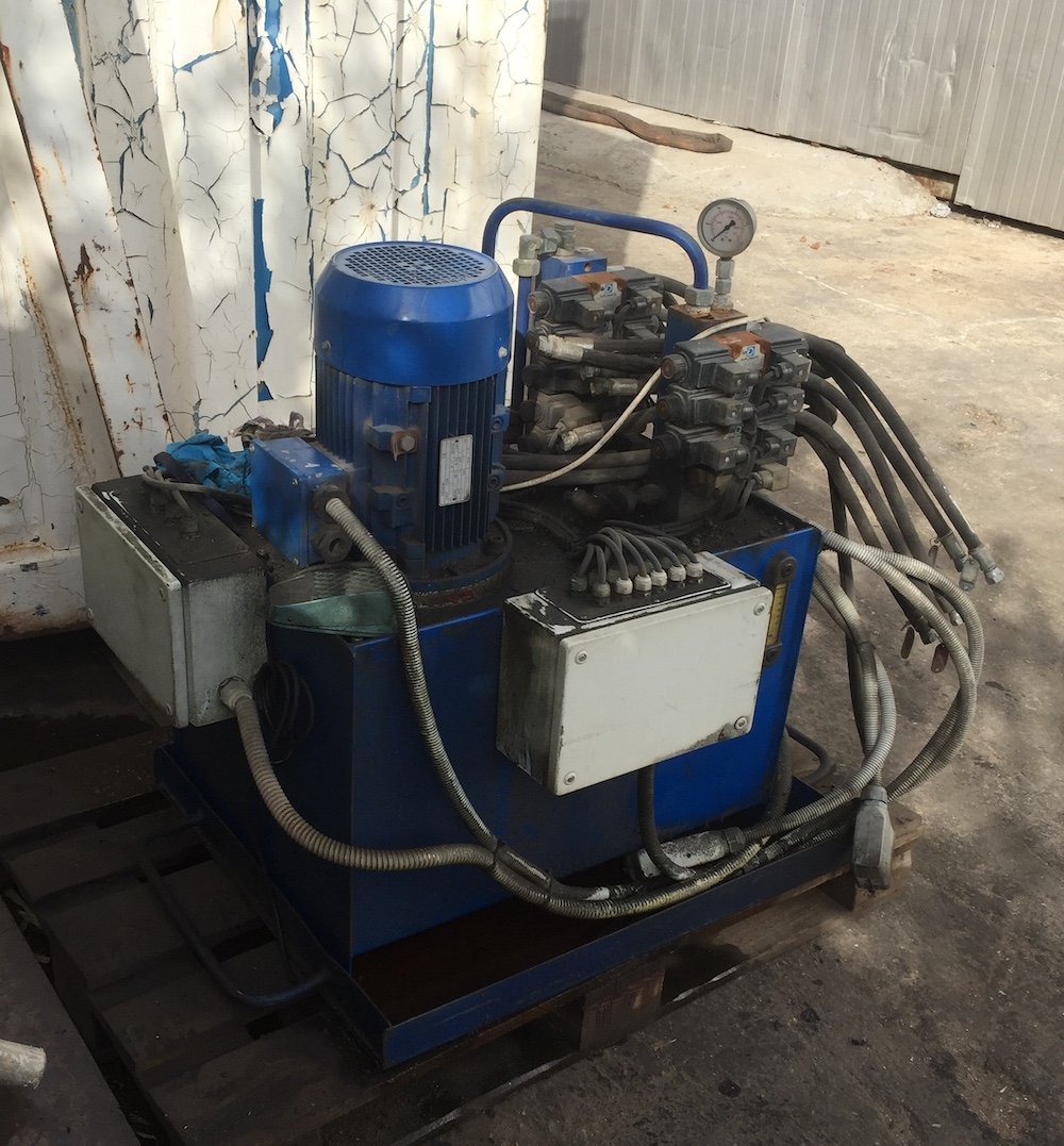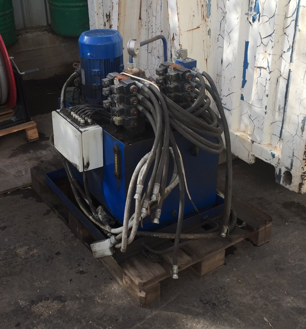 Υδραυλικό συγκρότημα με αντλία και πολλαπλά χειριστήρια.